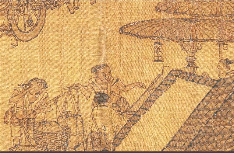 当然,如果宋人不喜欢喝茶的话,还有其他选择。在北宋画家张择端的《清明上河图》里,可以找到多处“饮子”(饮品店)的身影。例如,“久住(意为此店舒适,可长久居住)王员外家”店门前,就支起两把遮阳伞,上面写着“饮子”“香饮子”;虹桥桥头脚店对面也有一饮子摊,挂着“饮子”的招牌。
