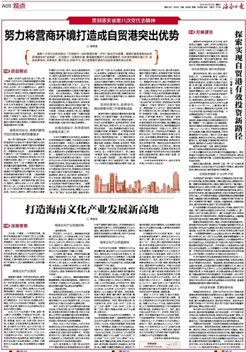 文化是一个国家、一个民族的灵魂。海南自贸港建设离不开强有力的文化支撑。省第八次党代会在未来五年的发展目标中明确要求,“高水平的公共文化服务体系和文化产业体系初步形成。”当前,海南自由贸易港建设蓬勃展开,海南文化产业发展迎来“新风口”。如何借助独特的资源禀赋和有利的政策优势,推动文化产业在守正创新中发展壮大,建设具有强大文化软实力的自由贸易港,打造中国向世界全方位展示文化软实力的新名片,成为海南需要深入思考的重要课题。
