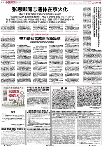 21日上午,八宝山革命公墓礼堂庄严肃穆,哀乐低回。正厅上方悬挂着黑底白字的横幅“沉痛悼念张思卿同志”,横幅下方是张思卿同志的遗像。张思卿同志的遗体安卧在鲜花翠柏丛中,身上覆盖着鲜红的中国共产党党旗。