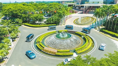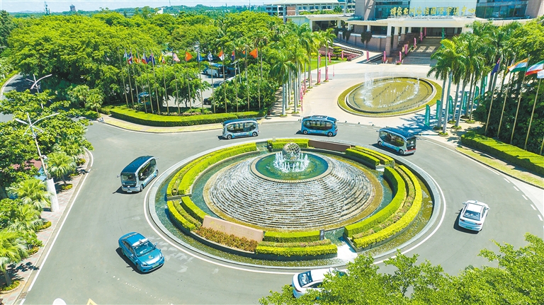 6月24日,在琼海市博鳌镇博鳌亚洲论坛永久会址,自动驾驶的智能汽车行驶在路上。
