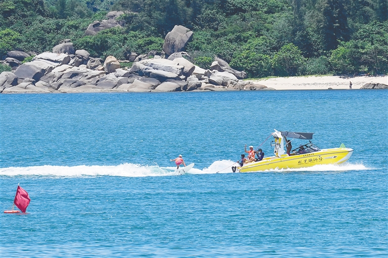 据了解,本次比赛是目前国内最高水平的尾波冲浪专业竞技赛事,也是海南亲水运动季的重要组成部分。近50位国内高水平的尾波冲浪及滑水运动员参赛,在皇后湾开启为期3天的水上竞技比拼。
