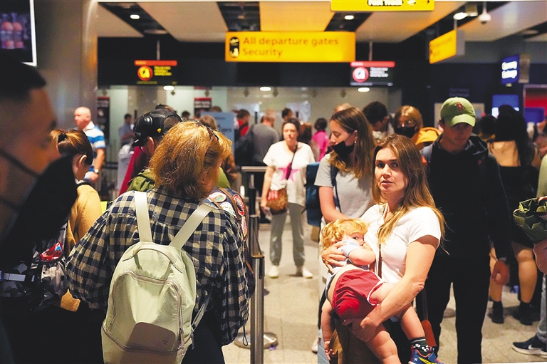 6月22日,旅客在英国伦敦希思罗国际机场排队。