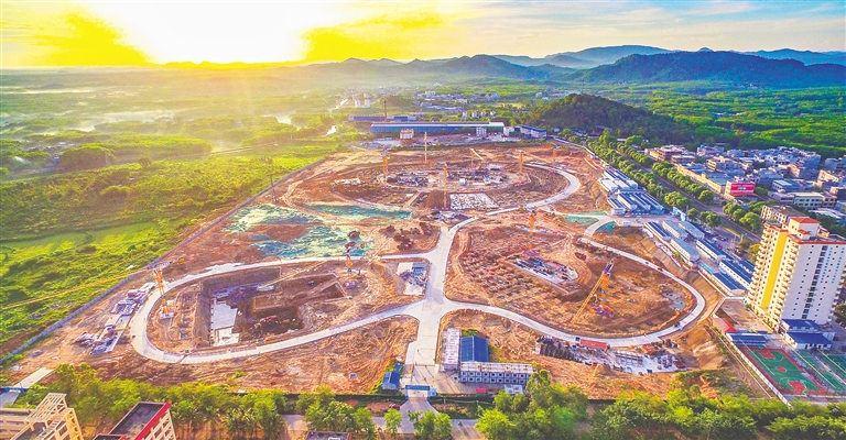 昔日一片荒地,如今已是儋州城市新地标。据悉,儋州市体育中心“一场两馆”位于那大镇北部湾大道与中兴大街交汇处,三个比赛场馆整体呈“品”字形排列,总投资14.6亿元,用地面积24.4万平方米,建筑面积10.2万平方米,于2019年7月18日开工建设。