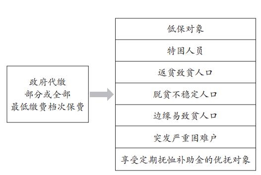 2021年至2025年,如果是低保对象、特困人员、返贫致贫人口、脱贫不稳定人口、边缘易致贫人口、突发严重困难户、享受定期抚恤补助金的优抚对象等参保人员,由各市县政府结合本地实际,按照最低缴费档次为其代缴部分或全部保费。