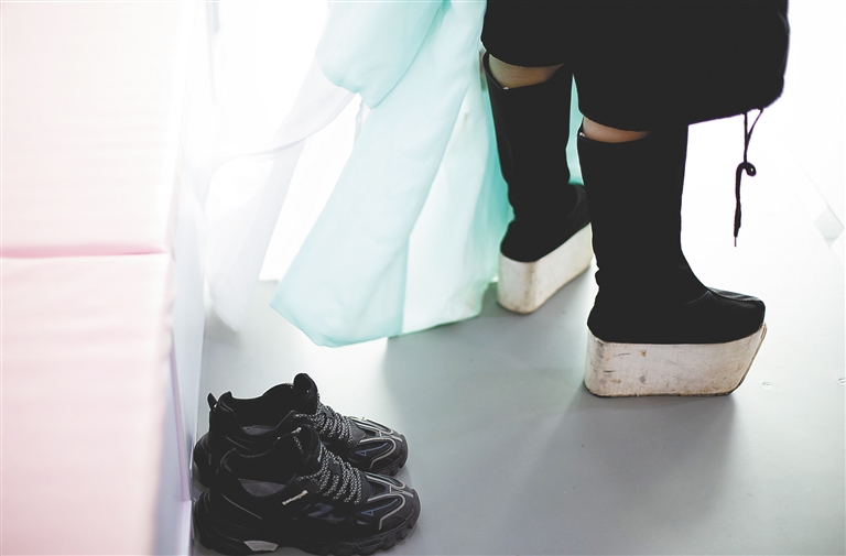 还有他那一直被诟病的身高。别人穿着两寸半的鞋子,高荣伟就得穿着四寸甚至是五寸高的鞋子。每天穿着十几斤重的鞋子反复练习,对高荣伟来说是常事。甚至在毕业后,不少知名剧团也以身高为理由,拒绝了在校成绩年年第一的他。