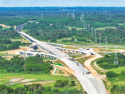 6月25日,建设中的国道G360文临公路项目与海南环岛高速东线相交。目前,国道G360文临公路项目定安至澄迈段土建工程已接近完工,桥梁工程建设已全部完成,交安、机电、房建工程正在持续推进建设中,目前,碎石底基层铺筑已完成81%,沥青下面层摊铺完成33%。