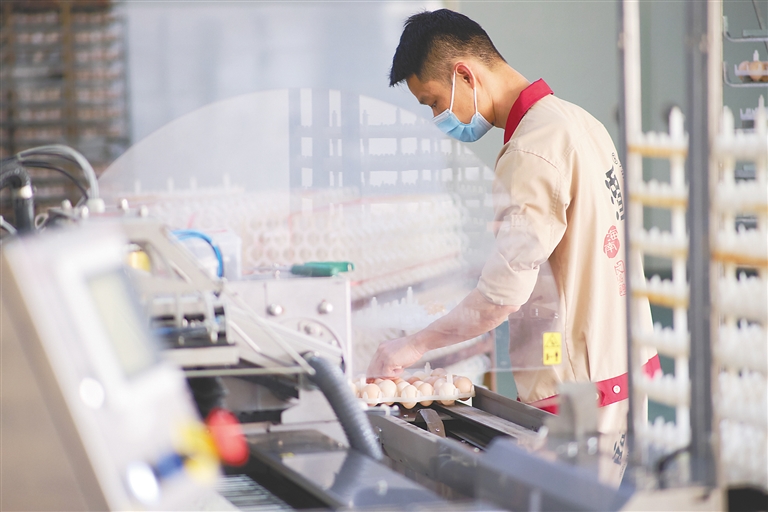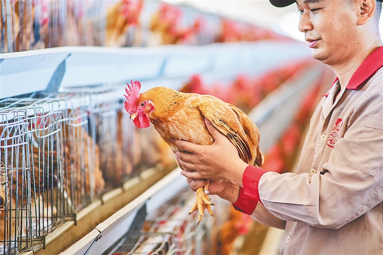 “国内传统人工养鸡效率,平均水平大约是每人饲养3000只鸡,在这套流水线操作下,我们这里每人能养3万只鸡。”林鹏说,在精细化管理之下,产业园每天能出笼约14万只种鸡,而管理团队仅需12个人。