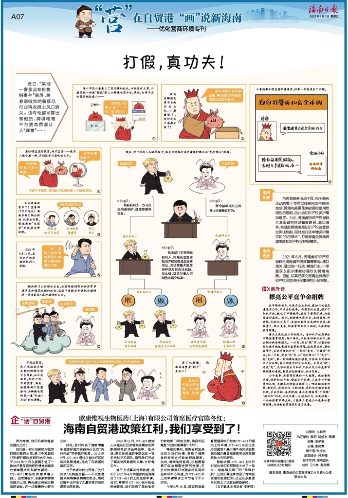 公平竞争,是营商环境的一大招牌。就该案例来看,保护知识产权,营造公平环境,不在于口号喊得响不响,关键在行动能否跟得上。唯有瞄准新形势、新变化,突出法治、大胆创新,有的放矢推进制度创新,多出实招、善用硬招,真正发挥监管“千里眼”“顺风耳”作用,不放过每一个侵权行为,不冤枉每一个合法经营市场主体,才能真正营造公平竞争的营商环境,为海南自贸港吸引更多流量。