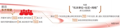 在城市,东方构建“机关单位+社区+网格”多元治理格局,推动133个机关和企事业单位党支部与200个村(社区、居、连队)党支部开展结对共建,7000余名在职党员到社区报到,深入开展“认领微心愿、服务千万家”“我为群众办实事”等活动;在机关,东方重点抓好政治机关建设,深入实施“政治三力”提升行动;在学校,东方重点抓好“党建+特色办学”,积极推动在感恩学校、特殊学校、琼西中学建立党建共同体,推动“阳光快乐”特色印记教育质量大提升;在医院,重点抓好党建引领健康东方行动,推动市人民医院落实党委领导下的院长负责制;在两新组织,重点抓好“两个覆盖”提升行动,推动两新组织党支部阵地建设、队伍管理、制度执行等规范落实、提质升级。