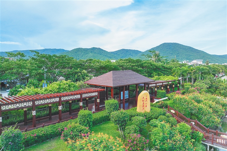 在三亚市吉阳区博后村,79岁的村民高明扬参加主题党日活动后,习惯性沿着哎岬湖散散步,站在观景平台上望着排排整齐的民宿不禁感叹:日子是越过越甜。