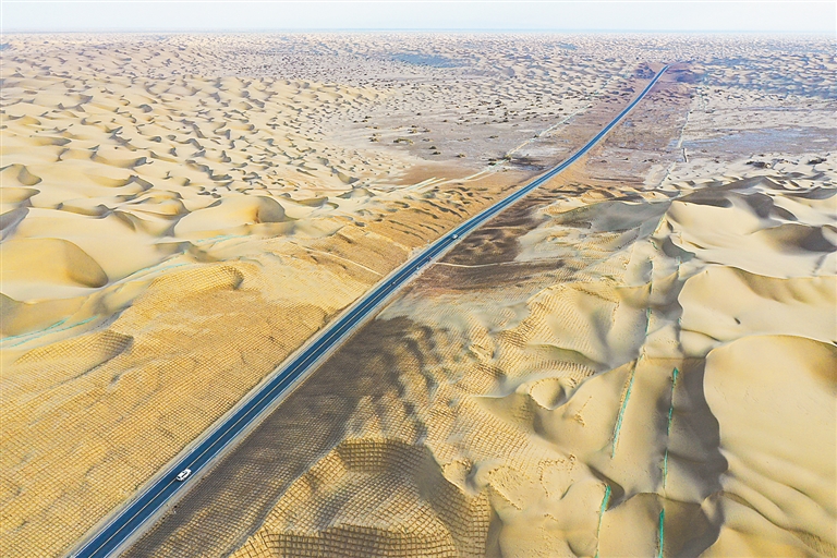 6月30日,新疆尉犁县至且末县沙漠公路正式通车。这条于2017年10月开工建设的沙漠公路,全长334公里,是继塔里木沙漠公路、阿和公路后的第三条穿越塔克拉玛干沙漠的公路。至此,我国在有着“死亡之海”之称的塔克拉玛干沙漠修建了超1200公里的沙漠公路。