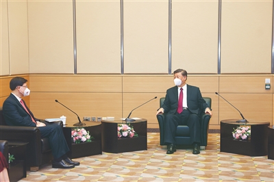 丁薛祥、许其亮、沈跃跃、王毅、夏宝龙参加有关会见。