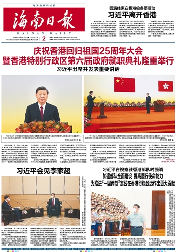 习近平指出,香港回归祖国25年来,驻香港部队坚决贯彻党中央和中央军委决策部署,认真落实“一国两制”方针和香港特别行政区基本法、驻军法,出色完成以履行防务为中心的各项任务。特别是面对近年来香港局势深刻复杂变化,驻香港部队有力服务中央治港工作大局,在实现香港由乱到治的转折中发挥了重要作用。