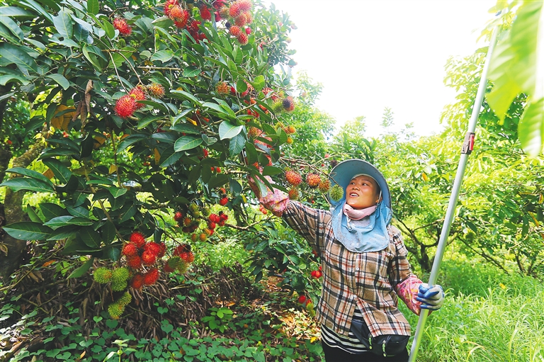 7月1日,保亭黎族苗族自治县保城镇,正是红毛丹成熟挂果的季节。