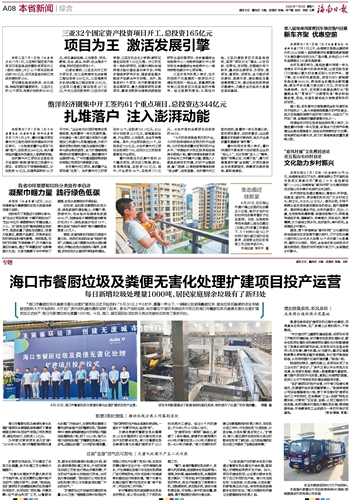 海口市餐厨垃圾及粪便无害化处理扩建项目投产运营