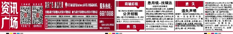 银达典当诚信经营23年,全国连锁分店25家,办理房产、汽车、名表、钻石、黄金、铂金、股票、数码产品及大宗房地产项目等典当贷款业务。正规专业、快速灵活、高额低息。海口公司:国贸玉沙路椰城大厦一层。电话:68541188、68541288、13307529219。三亚公司:三亚解放路第三市场旁,电话:88558868,13518885998。