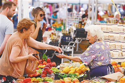 6月15日,一名女子在意大利罗马一家市场内购物。