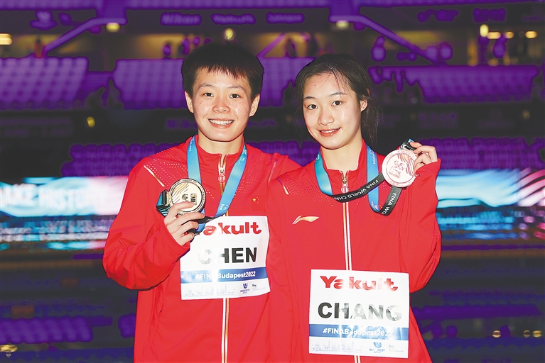 本报海口7月3日讯 (记者尤梦瑜)北京时间7月3日凌晨,在2022布达佩斯游泳世锦赛跳水女子3米板决赛中,海南姑娘陈艺文以366.90分夺得冠军,这也是中国跳水队在本届世锦赛上摘得的第11枚金牌。在北京时间当晚举行的世锦赛跳水项目女子双人3米板决赛中,陈艺文与搭档昌雅妮赢得跳水女子双人3米板冠军,为中国跳水队收获本届世锦赛第12枚金牌。