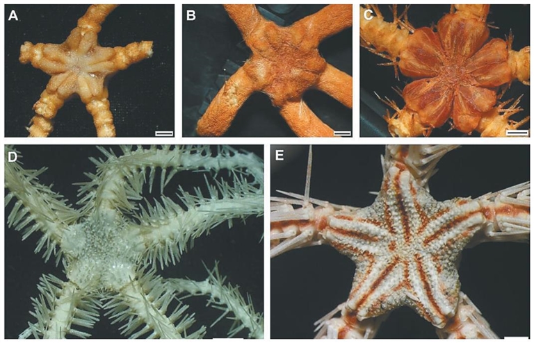 研究人员对2016年至2021年通过“深海勇士”号载人深潜器在南海、西北太平洋等海域采集的深海蛇尾样品,进行了形态学和分子系统学研究,鉴定出4个目、7个科、15个属的共36种深海蛇尾。其中包括7个新物种,研究人员分别对其进行了描述和命名(两个新物种以“深海勇士”号命名),有15个物种在南海或西北太平洋海域属于首次被发现(新记录种),为进一步理解南海和西北太平洋的深海蛇尾生物多样性提供了重要数据。此外,研究人员还对棘蛇尾和蔓蛇尾等几个主要蛇尾类群的分类学形态特征进行了比较分析,为这些类群中深海蛇尾的分类和形态鉴定工作提供了科学依据。