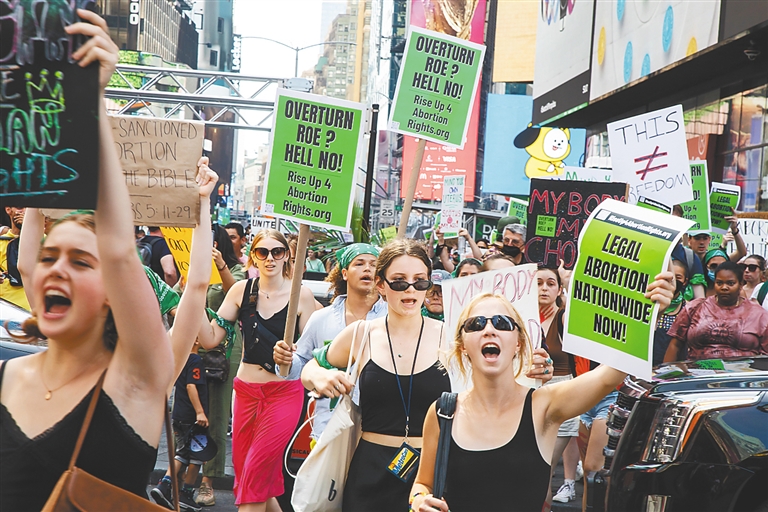 7月4日,堕胎权支持者在美国纽约举行示威游行。