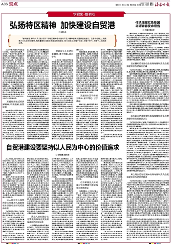 弘扬特区精神 加快建设自贸港