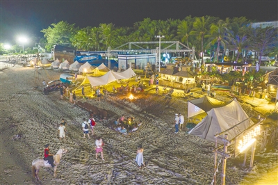 7月,三亚紧跟市场趋势与消费者需求,通过创新、跨界合作等方式,不断丰富夜间旅游产品供给,点燃游客夜间消费热情。图为7月5日晚,游客在三亚蜈支洲岛旅游区体验海岛夜生活。文/本报记者 李艳玫 图/本报记者 武威