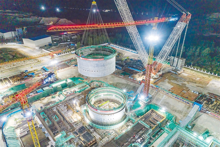 本报石碌7月6日电 (记者刘婧姝 邵长春 通讯员王骏驰)7月5日22时32分,在海南昌江核电基地,全球首个陆上商用模块化小型反应堆“玲龙一号”反应堆厂房钢制安全壳上部筒体起吊,并于6日0时8分顺利吊装就位,比计划提前70天完成进度目标,为高质量推进小堆工程建设奠定了坚实基础。