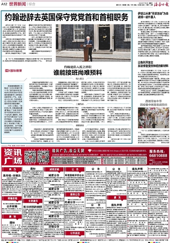 约翰逊辞去英国保守党党首和首相职务