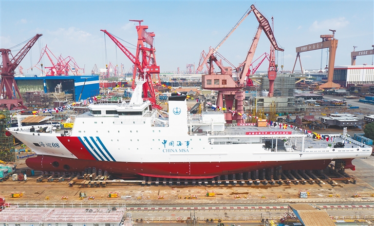 7月8日,我国具备深远海测量能力的专业海道测量船“海巡08”轮在中国船舶集团有限公司下水。