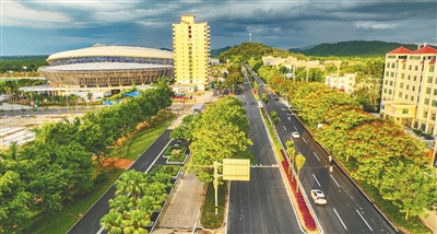 日前,在儋州市体育中心“一场两馆”旁,升级改造后的中心大街焕颜一新。