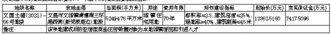 (二)宗地净地情况:本次出让宗地按净地条件出让,即土地权利清晰、安置补偿落实到位、地上附着物清表、无法律经济纠纷、土地开发利用规划条件明确、符合土壤环境质量要求、具备动工开发所必需条件。二、本次挂牌出让限房价,竞地价。按照出价最高且不低于底价者得的原则确定竞得人。同时该宗地设定最高报价为12992.43万元(折合165万元/亩)。当竞买人持续竞价达到设定最高报价12992.43万元(折合165万元/亩)时,则现场转入以摇号方式确定竞得人。按照摇号规则,摇号中签者即为该宗地使用权竞得人。但仅有一位竞买人愿意参与现场摇号,其余竞买人选择放弃时,则申请摇号的竞买人为该宗地使用权竞得人。三、开发建设要求:(一)竞得土地后,竞得人须当场签订《成交确认书》,并在签订《成交确认书》后20个工作日内签订《国有建设用地使用权出让合同》,合同签订后1个月内必须缴纳出让价款60%的首付款,余款要按合同约定及时缴纳。分期支付国有建设用地使用权出让价款的,受让人在支付第二期及以后各期国有建设用地使用权出让价款时,同意按照支付第一期土地出让价款之日全国银行间同行拆借中心公布的贷款市场报价利率,向出让人支付利息。(二)安居型商品住房套型建筑面积最大不超过120平方米,并实行全装修和采取装配式建筑的方式建造,住宅室内装修标准不低于1000元/平方米。安居型商品住房的销售指导均价为8300元/平方米,地下车位每个销售价格不高于7万元。(三)安居型商品住房项目建设要严格按照《海南省人民政府关于加强新建住宅小区配套公共服务设施建设管理的意见》(琼府〔2017〕96号)要求,配套建设教育、医疗卫生、商业服务、文化体育等公共服务设施和水、电、路、气、光等“五网”基础设施。配套的基础设施和公共服务设施要与主体工程同步规划、同步建设、同步验收、同步交付使用。(四)本次宗地属我市2022年安居房项目建设中的一期项目用地,根据该地块整体项目规划,竞得人必须向第二期项目中标单位支付1150万元的幼儿园建造费,竣工验收后无偿交付市政府或其指定的部门使用。竞得该宗土地后,竞得人须严格按照批准的项目规划设计方案要求,以及有关部门的行业规定,在五个月内动工建设项目,两年内完成建设并达到房源交付条件。不按批准的项目规划设计要求进行开发建设,以及不履行《国有建设用地使用权出让合同》约定的,报经市政府批准后,按该合同约定,退还除该合同约定的定金以外的全部或部分国有建设用地使用权出让价款(不计利息),收回国有建设用地使用权;受让人造成土地闲置,按照《海南自由贸易港闲置土地处置若干规定》执行。(五)本次出让宗地按净地条件出让,即土地权利清晰、安置补偿落实到位、地上附着物清表、无法律经济纠纷、土地开发利用规划条件明确、符合土壤环境质量要求、具备动工开发所必需条件。竞买人应当现场踏勘出让地块,竞买人申请参加竞买的,视为对出让地块净地条件无异议。(六)按照《关于印发<海南省建设用地出让控制标准(试行)>的通知》(琼国土资规〔2018〕7号)和《关于实施产业项目发展和用地准入协议的指导意见》(琼国土资规〔2018〕8号)有关规定,本次出让宗地城镇住宅项目用地控制指标,投资强度为不低于460万元/亩,不设定年度产值指标和年度税收指标,开发建设的项目产值和税收征缴按照现行有关法规政策规定执行,达产年限5年。以上控制指标按规定列入《产业项目发展和用地准入协议》,属于协议内容的组成部分,竞得人在签订国有土地使用权出让合同时,一并与文昌市住房和城乡建设局签订《产业项目发展和用地准入协议》。(七)竞得土地后,竞得人拟在文昌注册成立新公司进行开发建设的,应在竞买申请书中明确新公司的出资构成、成立时间等内容。(八)竞得土地后,竞得人须按规定完善该宗地施工报建、地质、压覆矿、消防、环保、土壤等审批手续,方可动工建设。(九)该宗地安居型商品住房实行现房销售制度,按《商品房销售管理办法》(原建设部令第88号)有关规定执行。(十)该宗地建成后的安居型商品住房销售对象为本地城镇居民和引进人才。四、竞买申请: 中华人民共和国境内外的法人、自然人或其他组织(法律另有规定者除外)均可申请参加竞买(注:失信被执行人不得参与本次竞买),申请人应单独申请竞买。本次挂牌不接受联合体竞买,不接受竞买人电话、邮寄、电子、口头报价。根据片区产业规划发展要求,保障安居型商品住房项目建设品质,该宗地竞买人资质由文昌市住房和城乡建设局初审。申请人应具备的其他条件:(一)申请人须具备上述竞买条件,并按规定缴交土地竞买保证金,经过审核我局将在规定的时间内确认其资格,签发竞买资格确认书。(二)经政府相关部门核实,在文昌市境内申请人存在下列情形之一的,申请人及其控股股东禁止参加挂牌:1.存在伪造公文骗取用地和非法倒卖土地等犯罪行为的。2.存在非法转让土地使用权等违法行为的。3.因企业原因造成土地闲置一年以上的。4.开发建设企业违背出让合同约定条件开发利用土地的。5.拖欠土地出让金的。(三)为了保证安居型商品住房项目的品质,竞买人须为《财富》杂志世界500强企业或上述公司的关联公司(仅指股权关系关联的公司,参股比例不低于50%)。(四)交