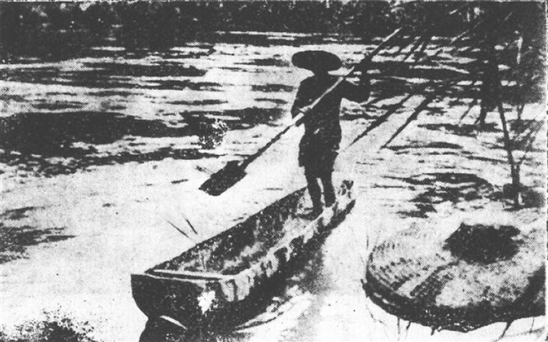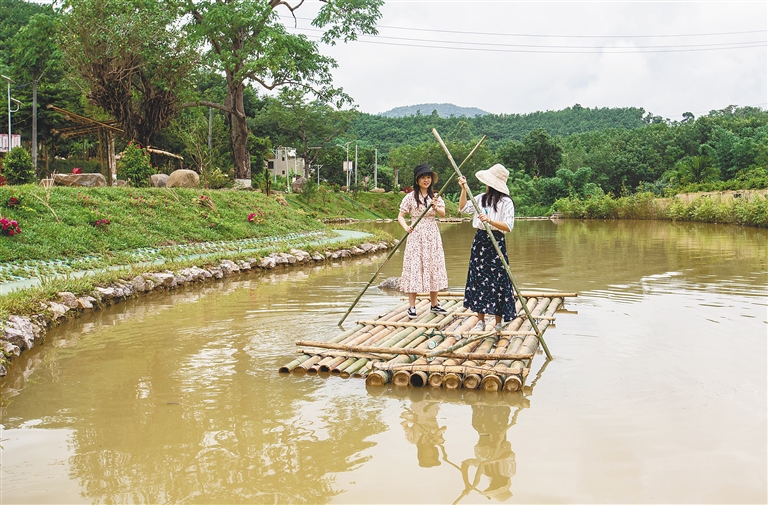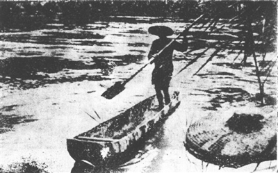 葫芦腰舟虽然小巧好用,但毕竟载重量有限且基本上无法用于运输大件货物,于是用竹木制成的排筏应运而生。海南黎族先民善用竹,他们取山林中的竹子制作盛具、渔具、乐器、武器,用有一定柔韧性的藤条绑缚粗竹竿制作竹筏,然后乘桴浮于江河,或运输物品,或捕鱼,或走亲访友。