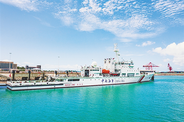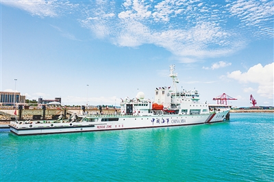 7月11日,台湾海峡首艘大型巡航救助船“海巡06”轮在福建平潭正式列编福建海事局,这将有效加强福建沿海的海事监管服务力量,提升水上交通动态管控和船舶险情事故应急处置水平,在保障物资运输通畅和重要航运通道安全等方面发挥重要作用。图为停靠在平潭海事监管基地的“海巡06”轮。新华社发