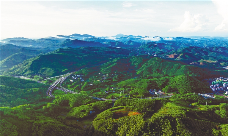 近日,俯瞰连接白沙黎族自治县牙叉镇的儋白高速公路。儋白高速公路是海南中西部区域的快捷旅游通道。通车以来,进一步提升海南中部地区发展水平,打破长期以来制约白沙等地经济社会发展的交通屏障,实现了海南岛“县县通高速”。本报记者 李天平 摄