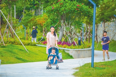 ➡ 经过整治的三亚南边海街边绿地干净整洁。本报记者 周月光 摄