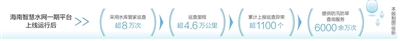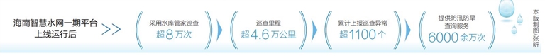 海南智慧水网一期平台上线运行后,采用水库管家巡查超8万次,巡查里程超4.6万公里,累计上报巡查异常超1100个,提供防汛防旱查询服务6000余万次,在我省水网智慧化管理中发挥了重要作用。
