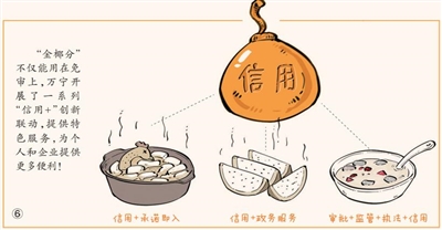 信用是市场经济的“基石”。万宁市结合能力提升建设年活动,创新推行“信用+免审”“信用+承诺即入”“信用+政务服务”“审批+监管+执法+信用”等系列改革,将“社会信用体系建设”一张蓝图绘到底,持续优化营商环境,不断激发市场主体活力。同时,万宁探索审批、监管、执法、信用4个环节衔接数据化转型,增强联合惩戒力度,确保在管得住的前提下放得更开。