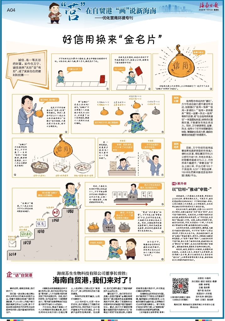 目前,万宁市依托信用监管结果实施多类型的市场准入便利化改革,审批事项平均20分钟可办结1件,市场主体准入时限整体缩减90%以上,办件效率大幅提升;“审管法信”平台上线以来,平台已将189个不良信用、6297个审批结果、169件处罚案件推送至信用中国(海南)平台。