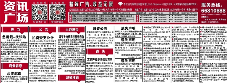 我公司2022年6月29日刊登于《海南日报》A15版的《海南金鼎拍卖有限公司拍卖公告》(202207015期),因疫情原因变更如下:1.竞买保证金缴纳由原截止时间2022年7月14日17时变更至2022年7月20日17时。2.展示时间增加2022年7月18日~7月19日两天。3.拍卖会开始时间由原定2022年7月15日上午10时30分变更至2022年7月21日上午10时30分。4.原公告其它事项不变。拍卖人联系电话:0898-66825575、13976607840、13807576766安先生、张女士。委托方监督电话:0898-63330451。特此公告。
