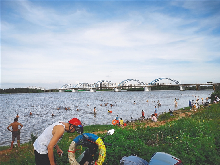 近日,海口、定安两地南渡江水域相继发生未成年人溺水事故,为暑期安全再次敲响警钟。但7月17日下午,海南日报记者在南渡江海口琼州大桥段往北300米处的水域走访发现,近百人在江中野泳、戏水,其中不乏未成年人,年龄小的仅有两三岁,安全问题十分突出。