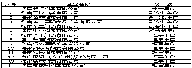 海南省拍卖行业协会按照协会章程及选举办法规定,于2022年7月8日在海口召开了六届一次会员大会、六届一次理事会,选举产生了协会第六届领导班子,其中会长1名、副会长5名,监事会主任1名、秘书长1名,理事单位共14家。现将换届选举结果公示如下: