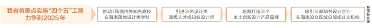 王静说,《海南国际设计岛建设方案》将在今年内印发,进一步推动各项建设任务落地见效;抓紧打造设计产业集聚地,建成一批设计产业基地、创意设计园区等,引导相关园区融入设计要素,以设计促进现有园区产业升级;利用海南国际合作办学优势,争取引进国内外设计类学校,并支持省内高校加强设计学科硕士点、博士点筹建;研究开展工艺美术等专业人员的职称评定,进一步畅通国内外设计人才来琼工作渠道。