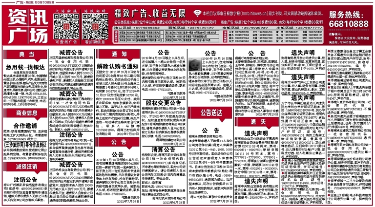 海南中天物业发展咨询有限公司遗失公章、法人章、财务专用章、发票专用章,营业执照正本、副本,工商注册号:28408059-0,声明作废。