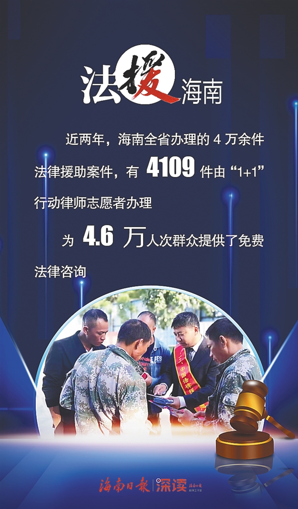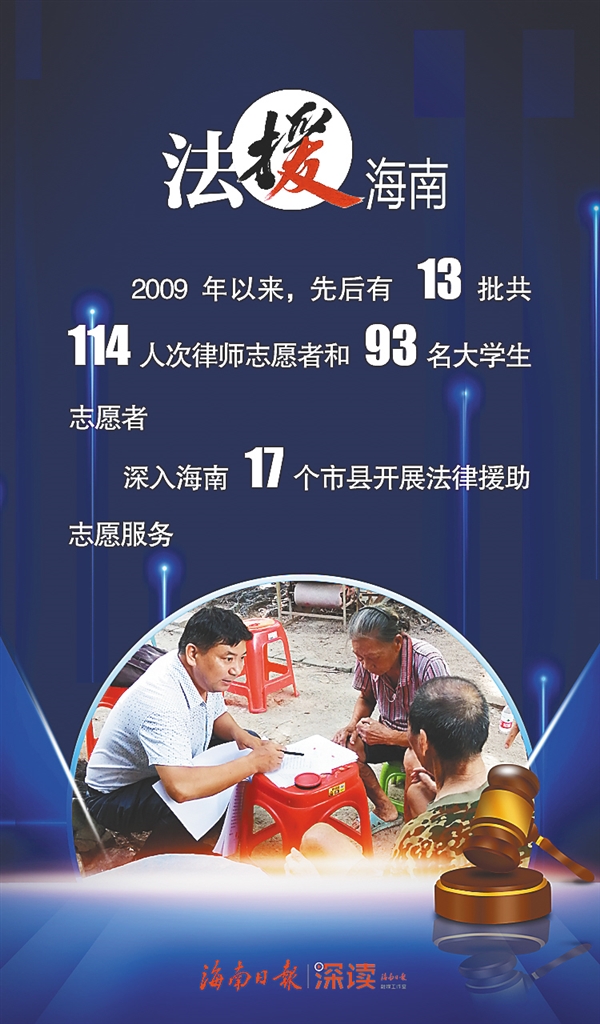 周研、杨彦萍、郑进东……13年间,法律援助志愿者的规模逐步扩大,先后服务17个市县。超过八成的服务覆盖率,让海南成为全国“1+1”行动覆盖市县最多的省份。