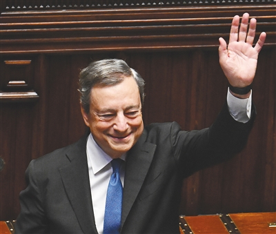 7月21日,在意大利罗马,意大利总理马里奥·德拉吉在众议院发表讲话后挥手致意。
