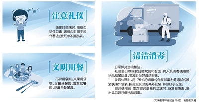 收取快递时,用 75%的酒精或含氯消毒剂等擦拭或喷洒快递外包装,拆封后及时丢弃外包装,并做好手卫生。