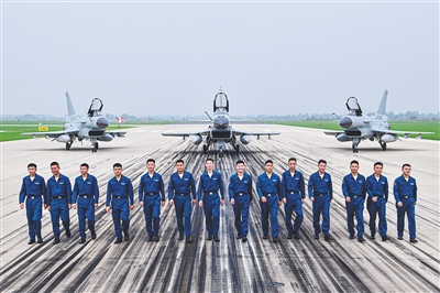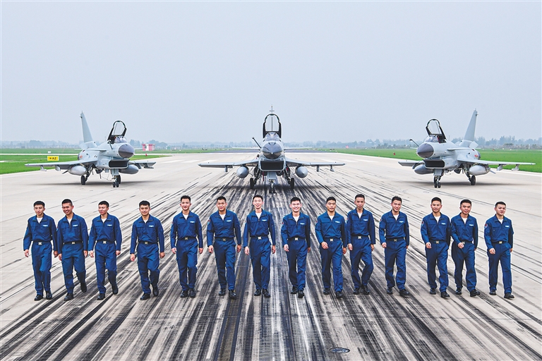 空军首批歼-10飞行学员在石家庄飞行学院某旅机场合影(2022年7月15日摄)。