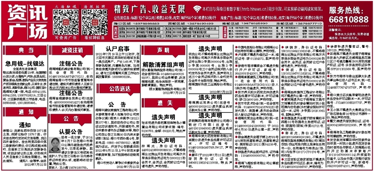 ●海南先策实业有限公司(统一社会信用代码:914600002941200589)于2022年6月30日遗失公章一枚,声明作废。