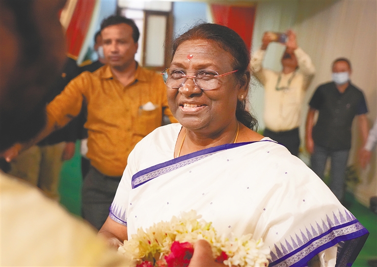 印度总统选举结果21日揭晓,执政的全国民主联盟推举的候选人德劳帕迪·穆尔穆击败反对党联合提名的候选人亚什万特·辛哈,当选印度新一任总统。新华社/美联