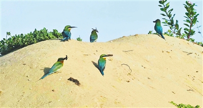 徐艳鹏上网检索相关资料,并向专家求证,确认这种小鸟就是栗喉蜂虎,是国家二级保护野生动物,更有着“中国最美丽的鸟”美誉,“每年4到7月,正是栗喉蜂虎的繁殖期,沙坡上的洞正是成鸟为幼鸟搭建的巢穴。”